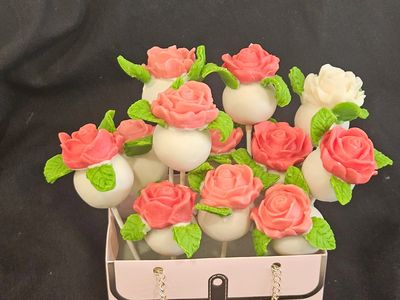 This is 6 beautiful Vanilla cakepops with candy roses abs candy leaves attached. Such a beautiful addition to any gift or be a gift on its own for this Valentines day